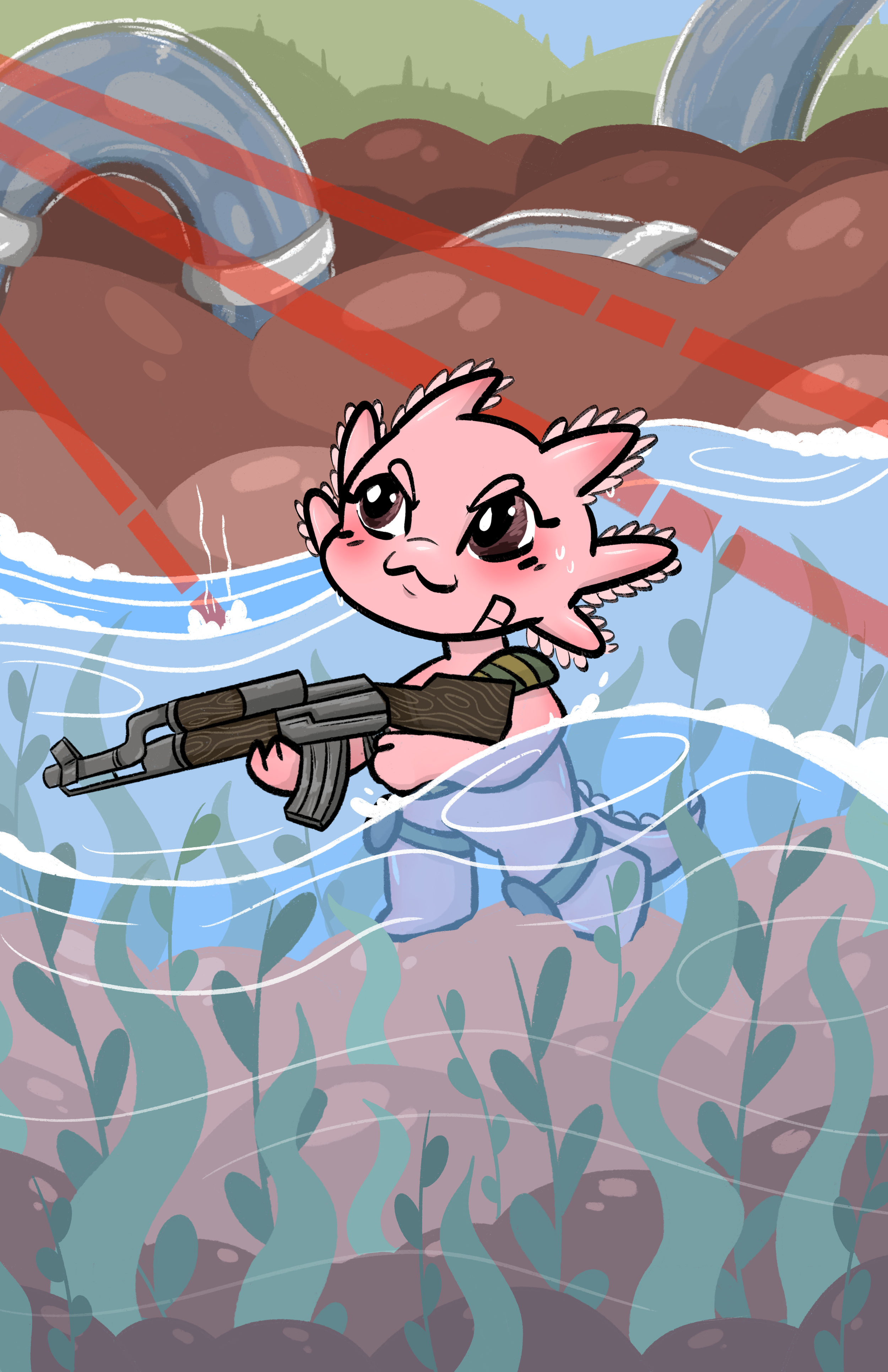 Axolotl with a Gun - My most recent project featuring my chibi artstyle